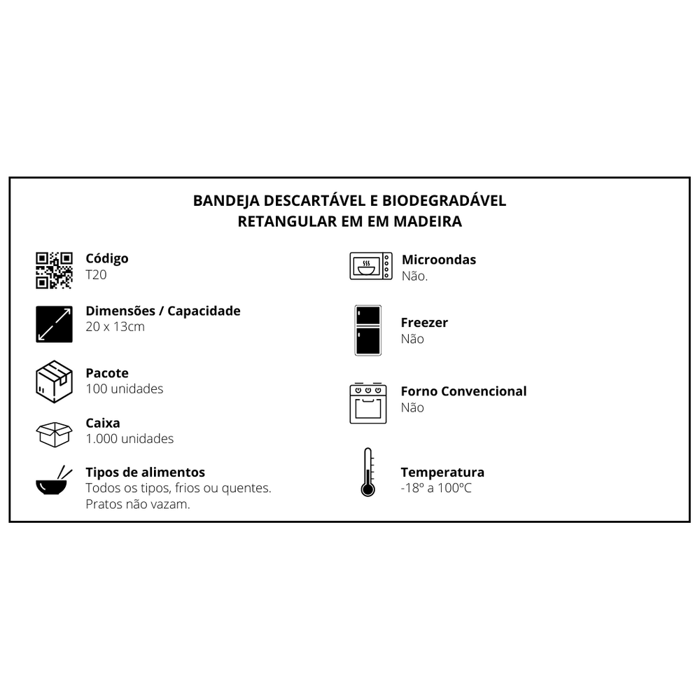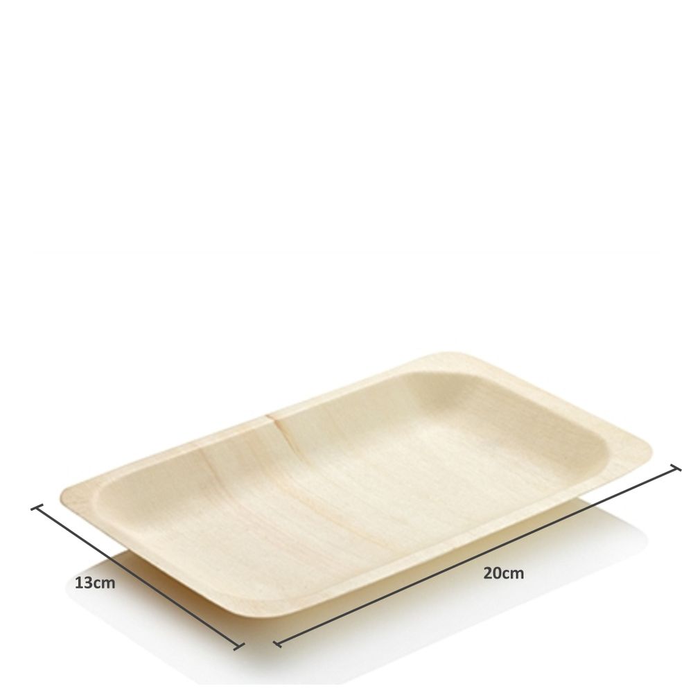 Prato Descartável Biodegradável Em Lâmina De Madeira, 20X13Cm - 100 Un.
